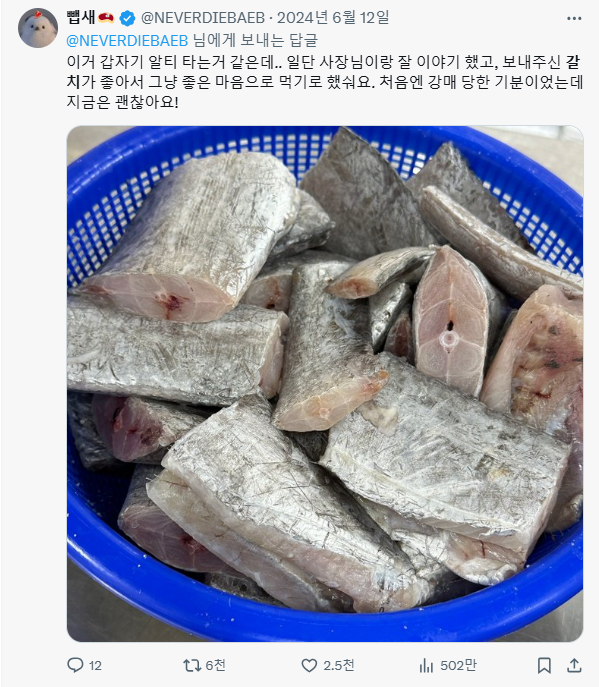 갑작스럽게 도착한 갈치 세 마리로 밈의 중심에 서게 됩니다.