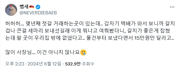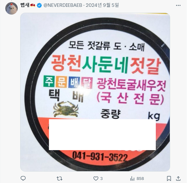 일반 손님에겐 아까워 단골인 뺍새님에게 보내줬다는 젓갈집 사장님의 진심.