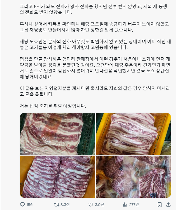 ‘노쇼 피해자 → 고기좌’로 다시 한 번 이름을 각인시킵니다.
