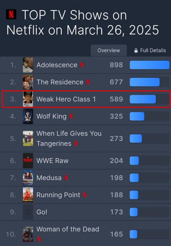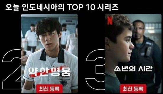 넷플릭스에서 공개된 직후 약한영웅 Class 1은 빠르게 글로벌 순위 상위권에 올랐습니다.