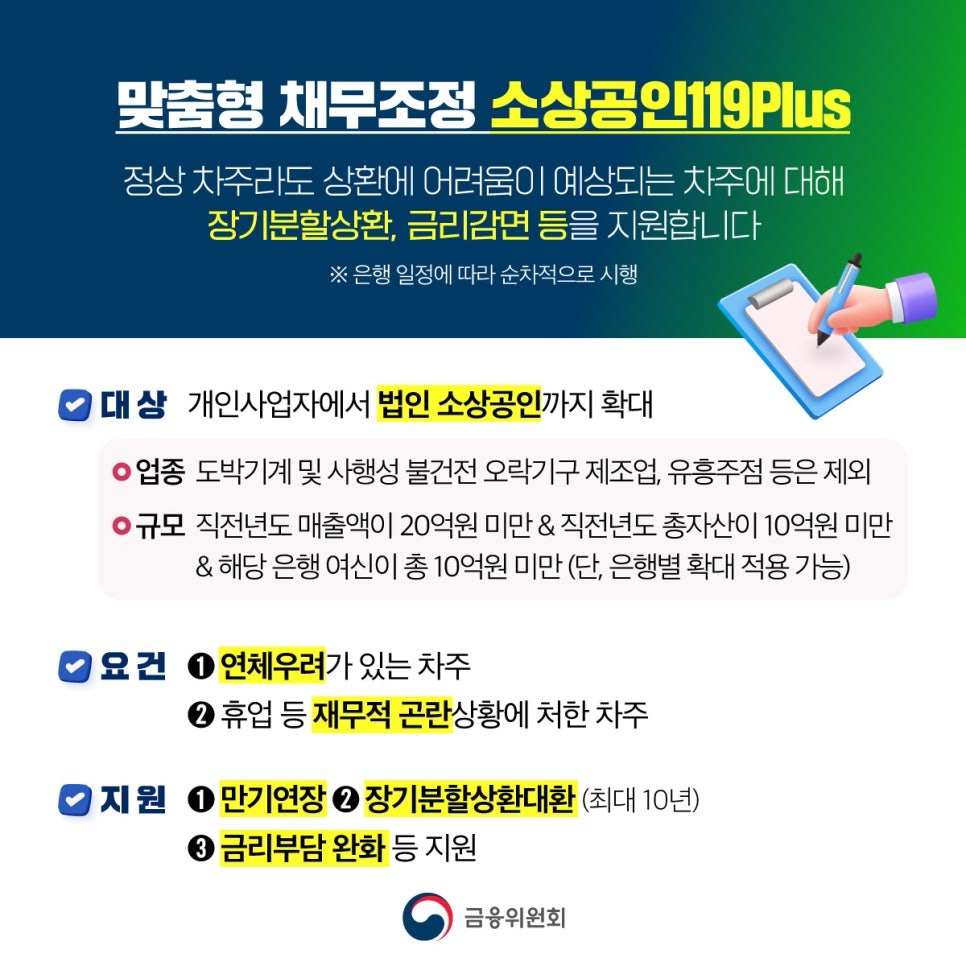 - 금리 감면, 만기 연장, 이자 유예 제공