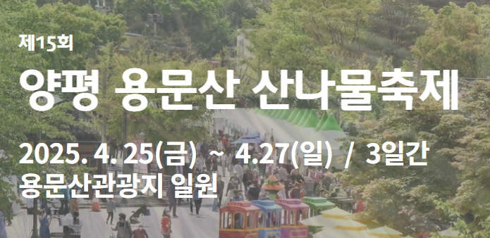 싱그러운 봄, 자연이 주는 최고의 선물! 양평 용문산 산나물 축제가 2025년 4월 25일부터 27일까지 3일간 개최됩니다. 직접 수확한 신선한 산나물을 맛보고, 다양한 체험 프로그램까지 즐길 수 있는 최고의 봄 축제인데요. 이 축제는 2025년 경기대표관광축제로 선정될 만큼 인기 있는 행사입니다