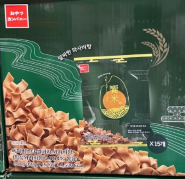 - 특징: 와사비 풍미의 쌀과자 15팩, 톡 쏘는 맛 좋아하는 분께 추천