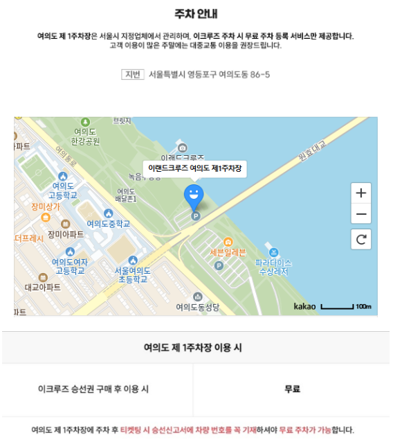 여의도 한강유람선 이랜드 크루즈 위치