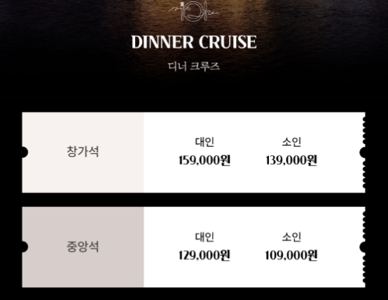 이랜드 크루즈 디너 뷔페 좌석별 가격