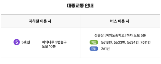 버스 이용 시 (정류장: 여의도중학교 하차 후 도보 5분)