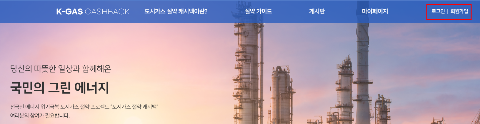 - k-가스 캐시백 홈페이지에서 회원가입 (별도 신청은 없고, 가입 = 신청이에요)