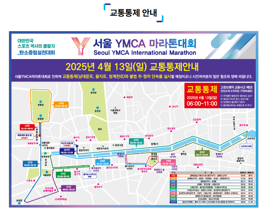 - 광화문 일대 및 코스 주변 도로 통제