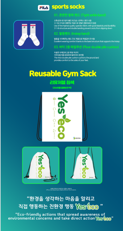 - 필라(FILA) 브랜드, 재활용 플라스틱 병 소재로 제작.