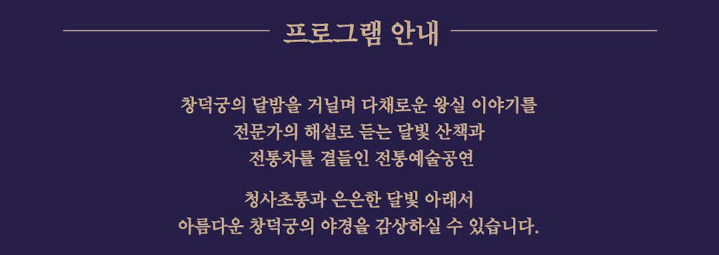 ✔ 창덕궁의 유일한 야간 관람 프로그램 (일반 야간개장 없음)